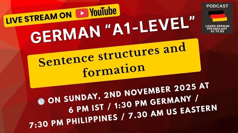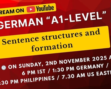 I’m pleased to invite you to our upcoming German A1 Live Practice Session on YouTube to learn and practice A1 level sentence structures and formation.