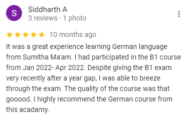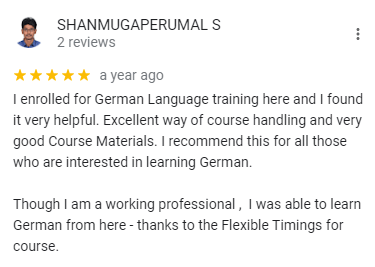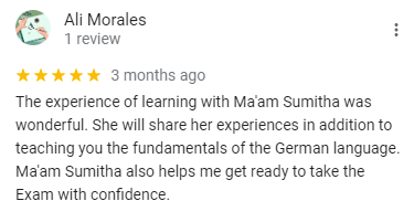 I am a passionate German language trainer. Previously, I worked as a software professional for over 14 years in a German-based company. I developed a passion towards learning German during my delegation at Germany. I started exploring and understanding their language, which helped me to pick up the language from native speakers and also understand their culture. This experience has helped me to evolve as a professional German trainer.