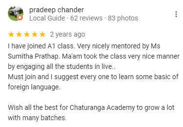 Learning German language at Chaturanga Academy is unique and fun! The curriculum follows the CEFR (Common European Framework of Reference) standards and is inline with Goethe Institute exams format and standard.